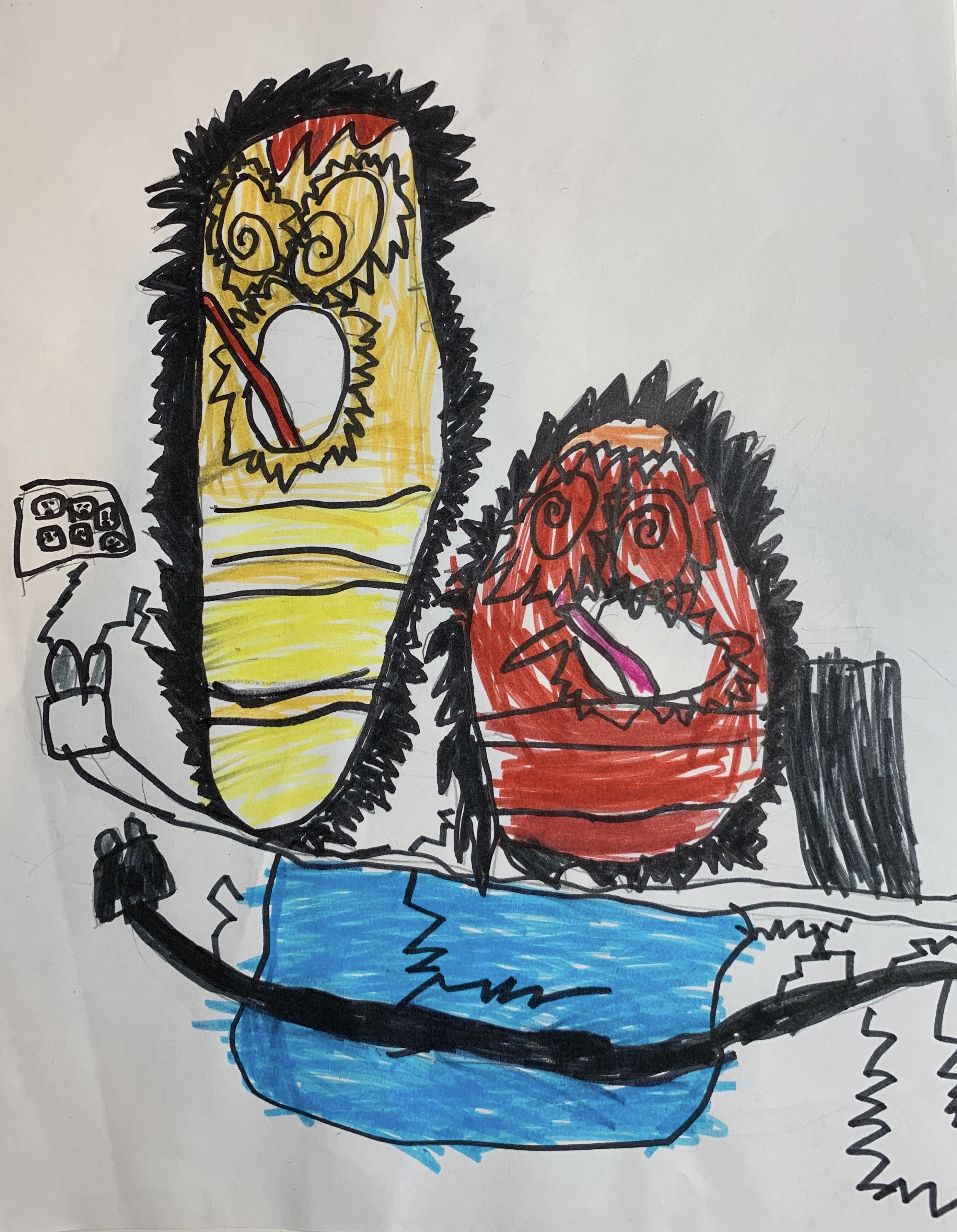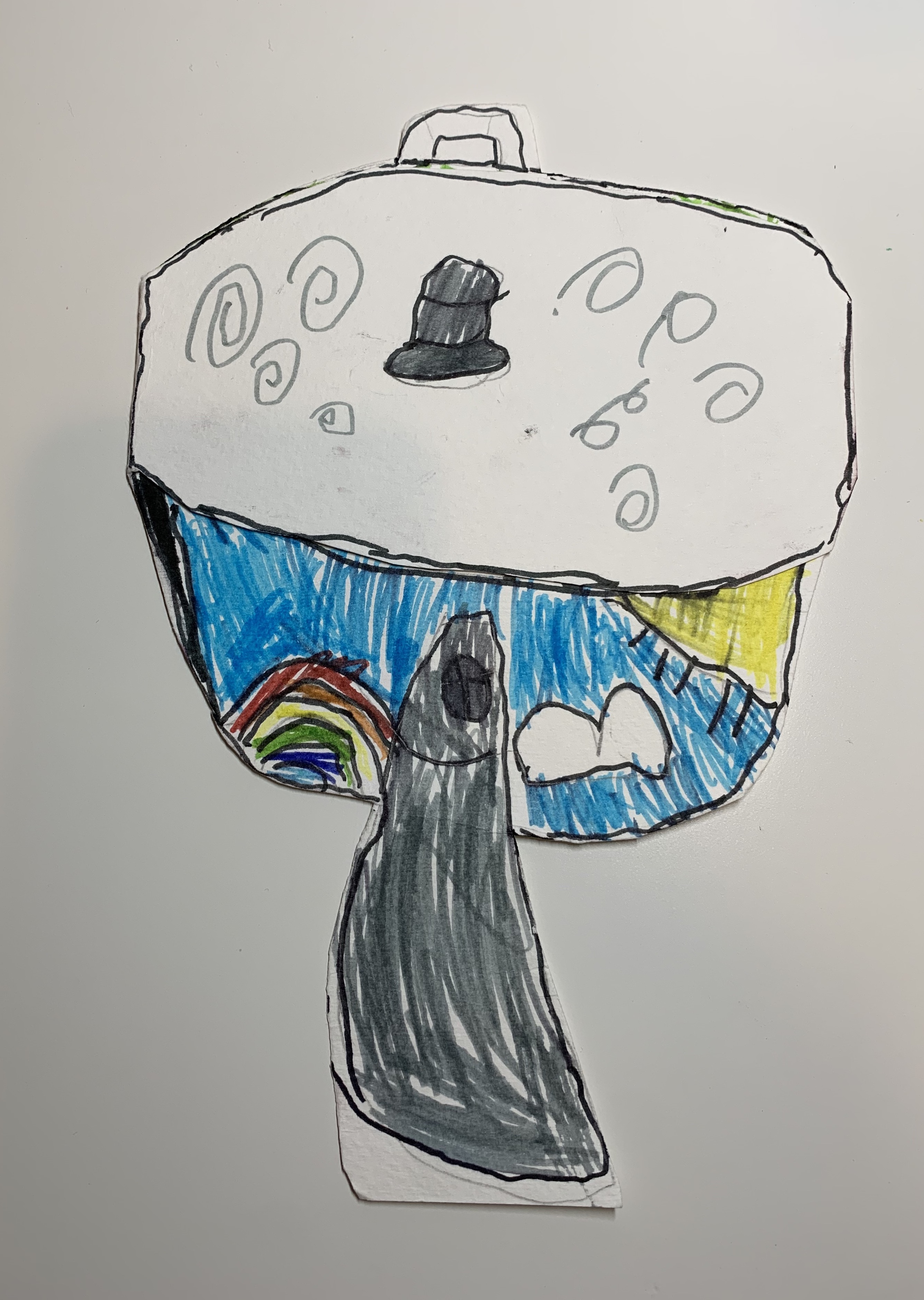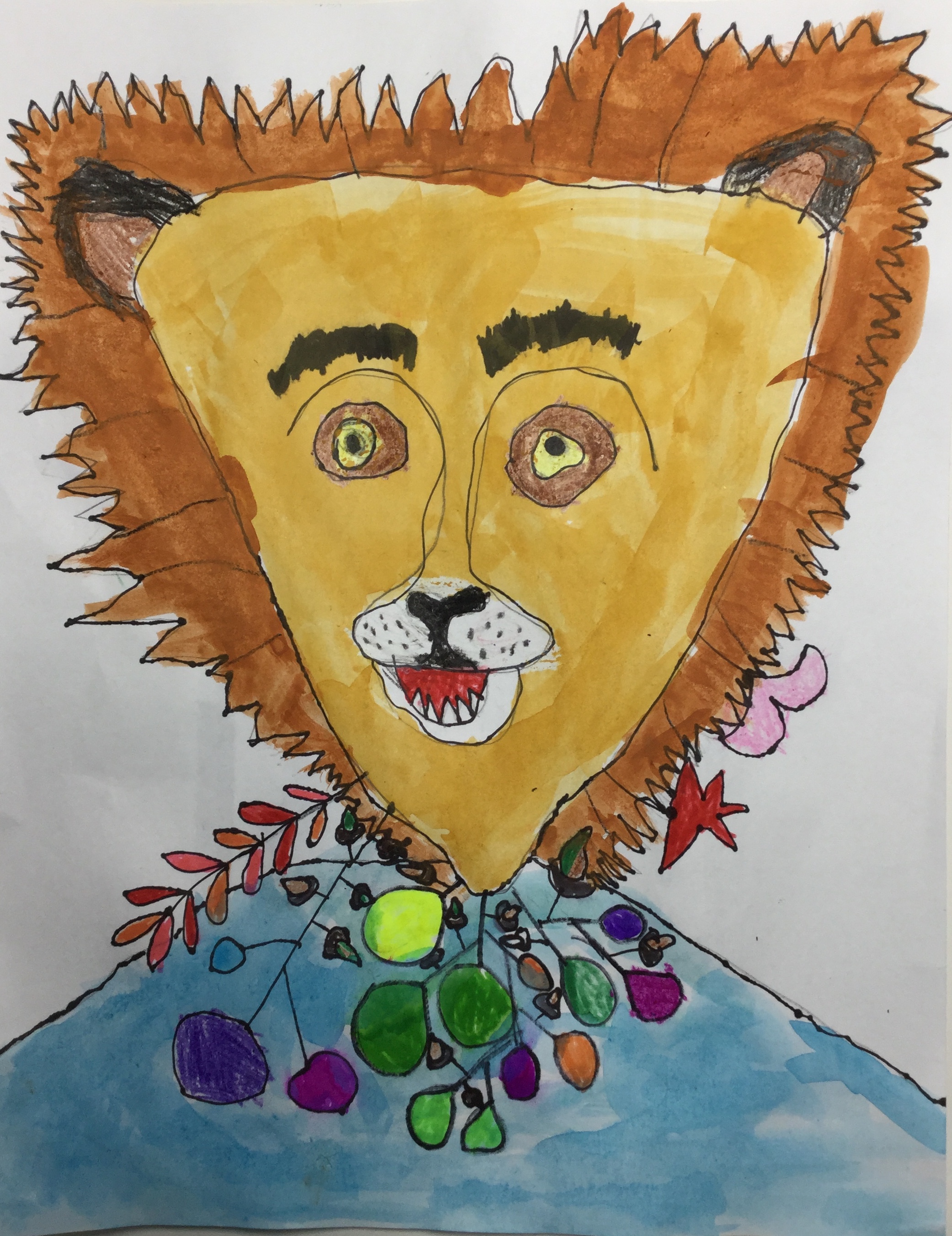 最后说说画啦啦, 试课感觉和CalColor有类似之处,老师会带小朋友先观察实物图片,绘画内容按照主题自由发挥,老师会帮小朋友依次单独辅导。试课之后老师也发来课程安排,按照年龄和学习年限循序渐进。他家的app做的也不错,每次课前有预习小视频,提醒准备画具,课后完成提交作品后老师会点评并提供范例图片。每周一个主题,鼓励小朋友观察生活中的事物进行描绘,并且反复练习基础的装饰涂色方法,课上没能画完的莫莫下课也会自己继续完成,有时候还越画越开心。要非让我再说一个优点,那就是小农妈最爱的价格,是这三个中最便宜的。我们已经上了十几次课,觉得物有所值。贴几张我觉得挺有意思的画,献丑。