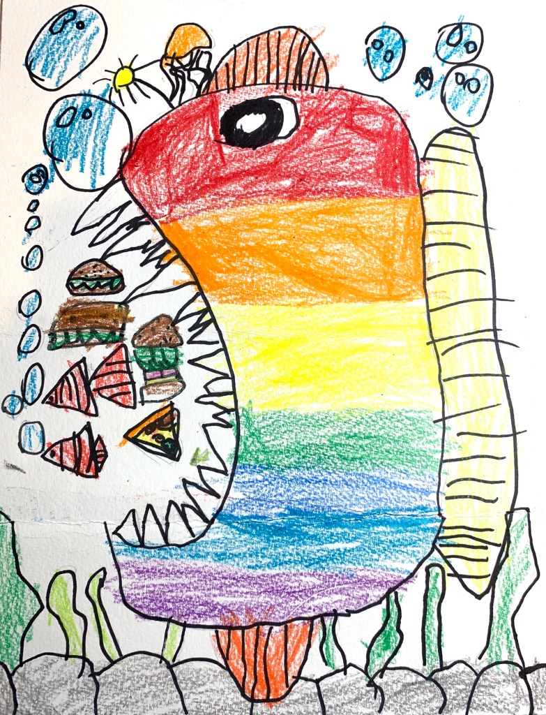 先来说美术宝。课程是一对一,高端大气,上课时间也比较灵活,方便美西时区。我们试课那节的内容是画灯笼鱼,老师在纸上带着小朋友一笔一笔画,颜色也是老师带着涂。一小时课程结束时画面完成度高,效果也很好,小朋友和家长都挺开心。但是呢总觉得少了点对事物的观察,也少了点创造性。在网上看到的其他家长的评价,美术宝好像没有固定的教学内容,老师会根据小朋友的兴趣决定上课内容,老师的水平也有高有低,好老师可遇不可求。